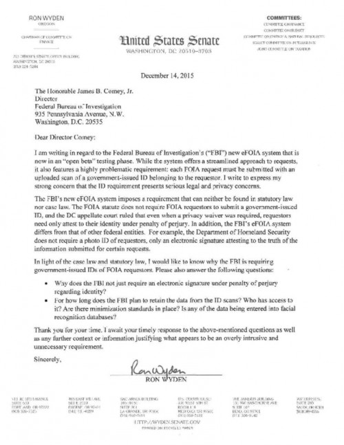 Wyden Letter to FBI on eFOIA