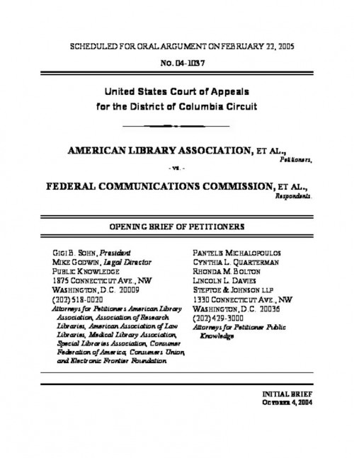 In a unanimous decision the D.C. Circuit Court of Appeals threw out the broadcast flag the FCC rule that would have crippled digital television receivers starting July 1. The ruling came in ALA v. FCC a challenge led by Public Knowledge and EFF.