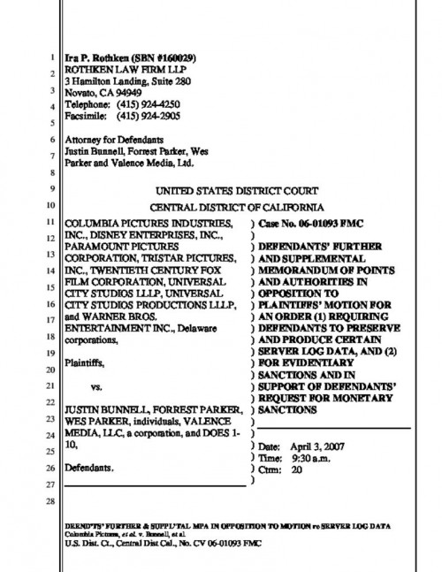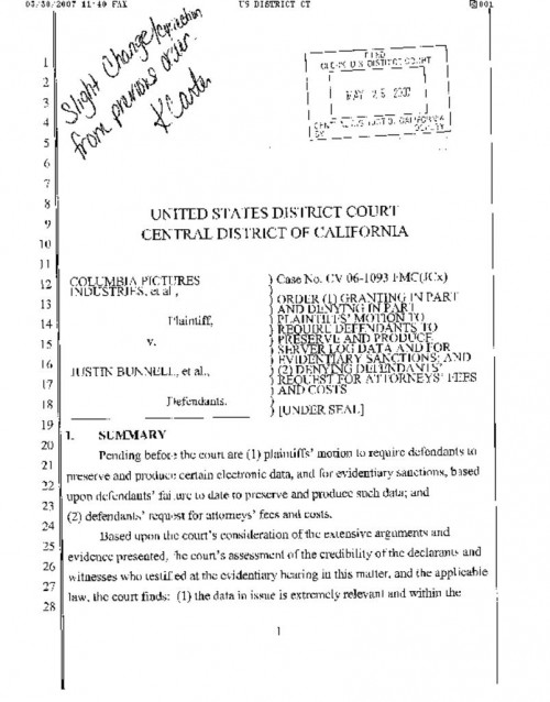 In this copyright infringement case the district court issued a dangerous ruling compelling TorrentSpy to create and store logs of its users' activities as part of electronic discovery obligations in a civil lawsuit.