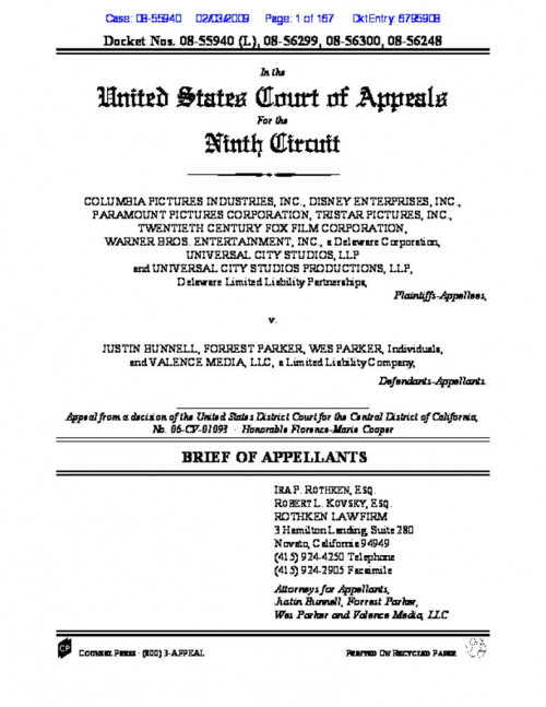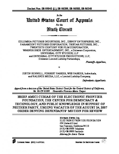 TorrentSpy has appealed that judgment. In the appeal proceedings EFF CDT and Public Knowledge have filed an amicus brief again directed to the RAM/logging issue. Taking no position on the terminating sanctions order which raises many questions based on the particular facts of this case the amici have asked the Ninth Circuit Court of Appeals to vacate the logging order. That order has dangerous implications that stretch far beyond the TorrentSpy case.