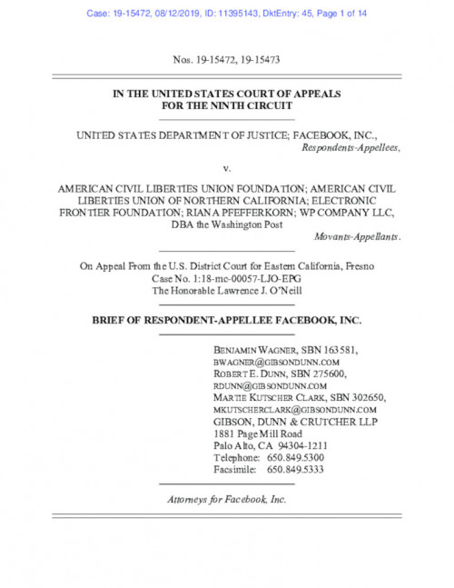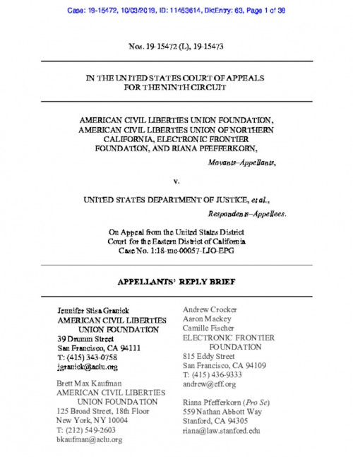 EFF, ACLU, and Stanford cybersecurity scholar Riana Pfefferkorn filed a petition in November 2018 asking a California federal court to make public a ruling that apparently denied a request by the Justice Department to force Facebook to break the encryption of its Messenger application in order to facilitate a wiretap of Messenger calls as part of a drug trafficking investigation. Facebook reportedly argued that complying with the government's request would have compromised the security and privacy of the service's users, but the court’s order and details about the legal dispute have been kept secret, preventing people from learning about how DOJ sought to break Messenger's encryption, and why a federal judge rejected those efforts.