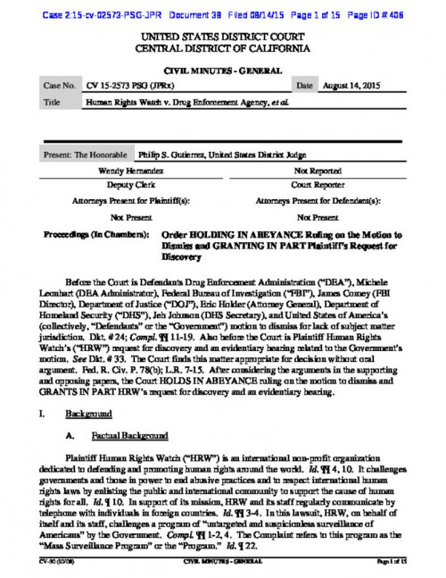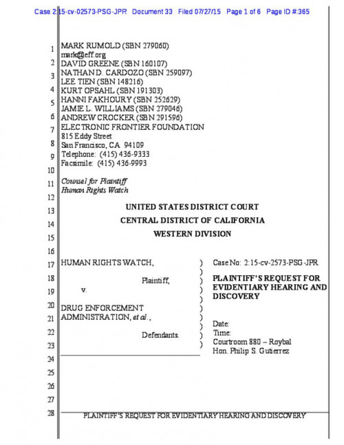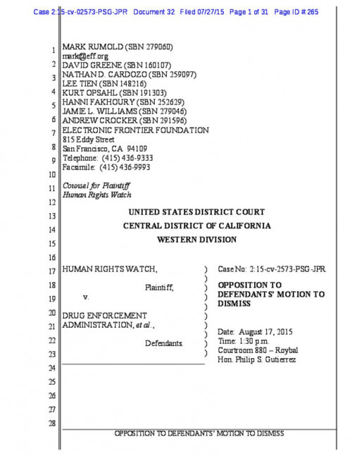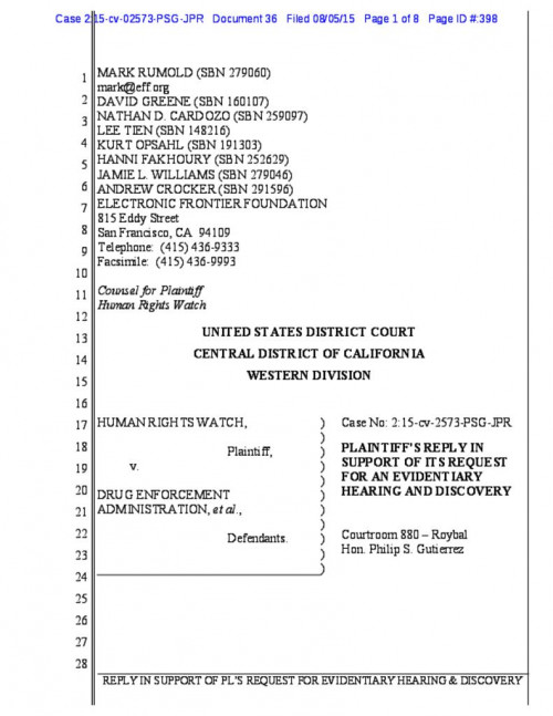 Human Rights Watch, a nonpartisan organization that fights human rights abuses across the globe, filed suit against the U.S. Drug Enforcement Administration for illegally collecting records of its telephone calls to certain foreign countries. EFF represents Human Rights Watch in this case, which seeks to ensure the program is permanently terminated, that it cannot restart, and that all of HRW’s illegally collected records have been purged from all government systems.