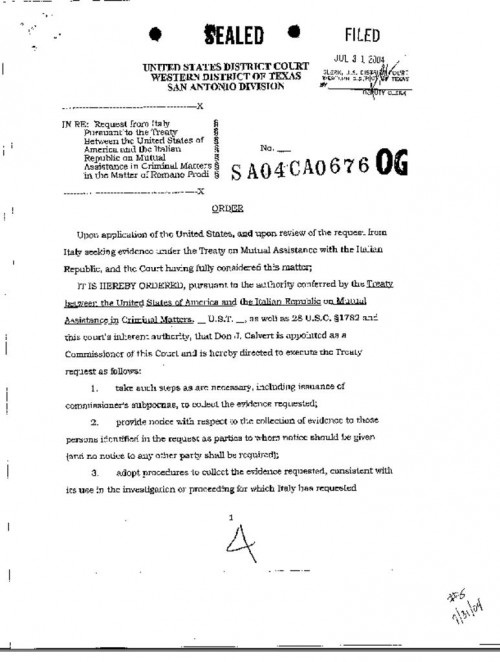 US Attorney requests the US District Court the appointment of a Commissioner to collect the evidence required to execute Italian request. Italian request (in English) included. - Government requests to seal [20k] 7/30/04