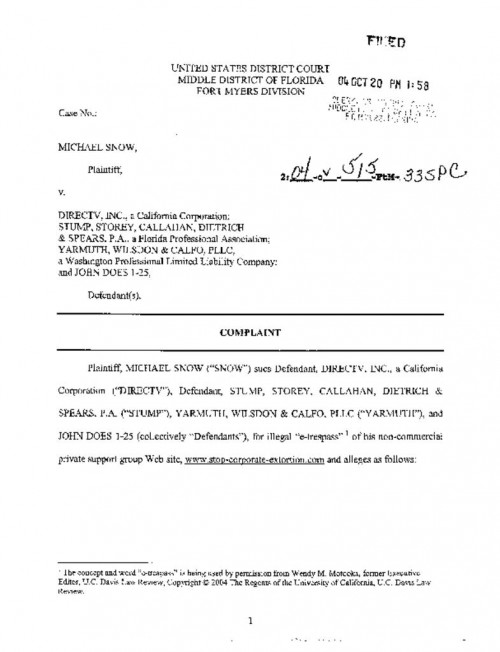 The case involved a lawsuit against DirecTV for accessing the public website of anti-DirecTV activists run by plaintiff Michael Snow. The website had a banner and purported Terms of Service forbidding DirecTV representatives from entering the site or using its message board, but it was configured such that anyone in the public could enter the site, create a profile, and use the board.