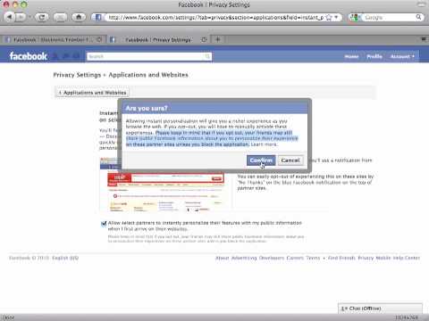 - Go to the Instant Personalization privacy setting and uncheck the "Allow" button. Click confirm. Come back to this page.