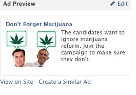 Facebook has publicly established guidelines that state that a Facebook advertisement "may not promote tobacco or tobacco-related products, including cigarettes, cigars, chewing tobacco, tobacco pipes, hookahs, hookah lounges, rolling papers, vaporized tobacco delivery devices and electronic cigarettes." But the language from the banned ads said simply things like: "Registered to vote? Make your voice heard on historic marijuana ballot measures this November" Another read "Marijuana Reform in 2012 | Obama and Romney are mum on marijuana reform. Learn how to make them start talking." Rather than advocate for marijuana usage, the banned ads urged users to get involved with fighting for reform.