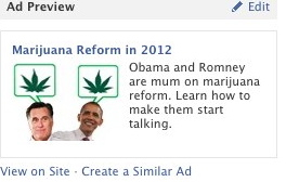 Last week, news outlets reported that Facebook was rejecting ads by advocacy groups working on marijuana policy reform. The ads in question showed marijuana leaves, sometimes with photos of Barack Obama and Mitt Romney, and urged viewers to join campaigns to make marijuana reform an election issue. Several versions of similar Facebook ads were submitted by Students for Sensible Drug Policy and Just Say Now, but both groups were initially rejected. After EFF and the ACLU of Northern California reached out to Facebook about the issue, Facebook did the right thing and restored the ads.