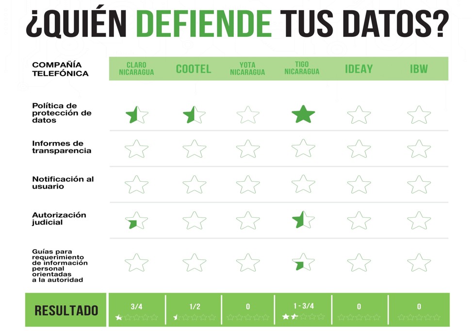 IPANDETEC, a digital rights organization in Central America, today released its first "Who Defends Your Data" (¿Quién Defiende Tus Datos?) report for Nicaragua, assessing how well the country’s mobile phone and Internet service providers (ISPs) are protecting users' personal data and communications. The report follows the series of assessments IPANDETEC has conducted to evaluate the consumer privacy practices of Internet companies in Panama, joining a larger initiative across Latin America and Spain holding ISPs accountable for their privacy commitments.