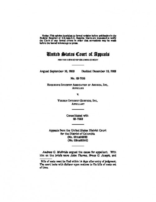Document | July 3, 2007 D.C. Circuit Opinion granting Verizon's Motion to Quash Read more about D.C. Circuit Opinion granting Verizon's Motion to Quash