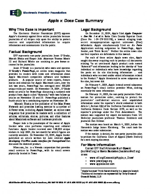 Document | September 13, 2007 Full Decision in Apple v. Does Read more about Full Decision in Apple v. Does