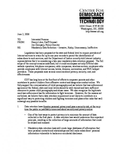 Mandatory Data Retention – Invasive, Risky, Unnecessary, Ineffective