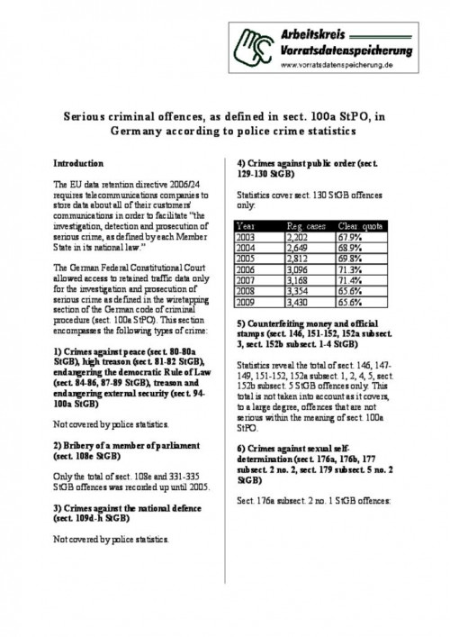 AK Vorrat Study Regarding Registered Serious Crime in Germany