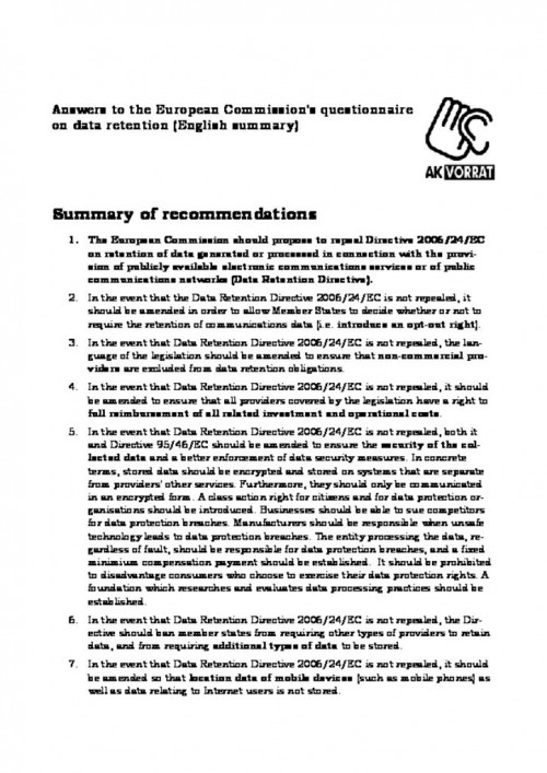 EDRI has published its own "shadow report" on the evaluation report on the Data Retention Directive....