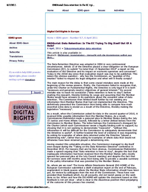 EDRI: ENDitorial: Data retention: Is the EC trying to dig itself out of a hole?