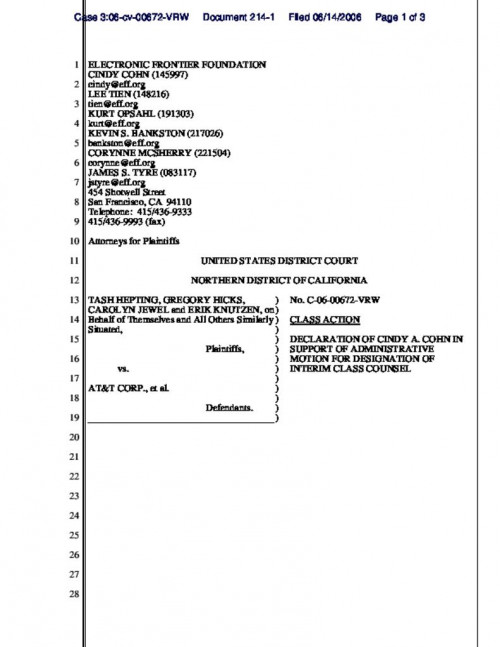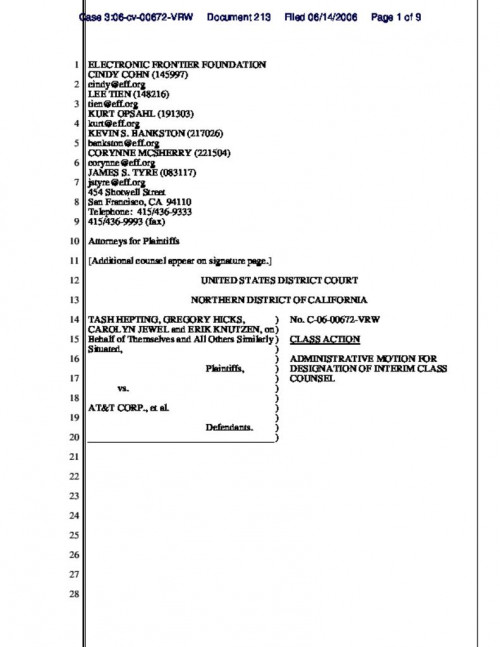Document | June 14, 2006 EFF motion for designation of interim class counsel Read more about EFF motion for designation of interim class counsel