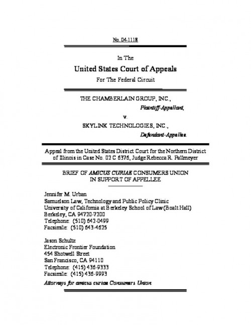Document | April 7, 2004 Amicus Brief of Consumers Union in Support of Skylink Read more about Amicus Brief of Consumers Union in Support of Skylink