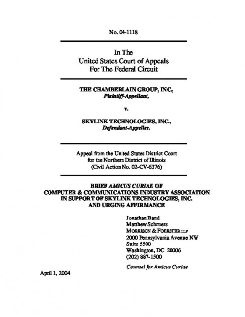 Document | April 1, 2004 Amicus Brief of CCIA in Support of Skylink Read more about Amicus Brief of CCIA in Support of Skylink