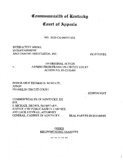Document | March 26, 2010 Court of Appeals Order Recommending Transfer to the Supreme Court Read more about Court of Appeals Order Recommending Transfer to the Supreme Court