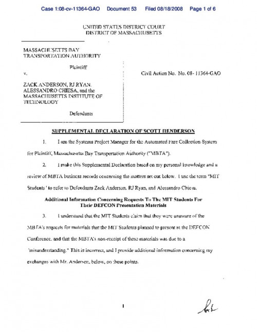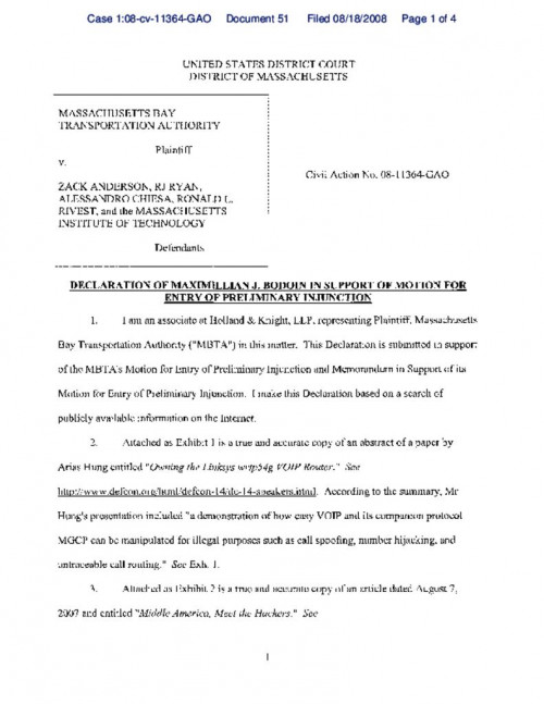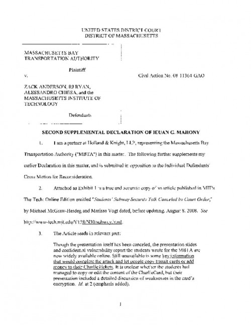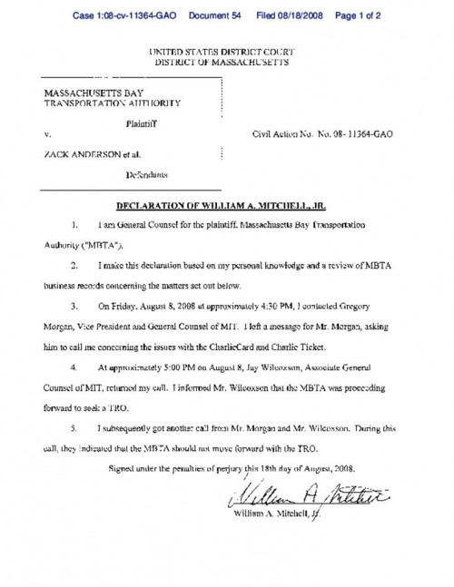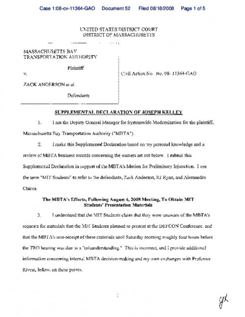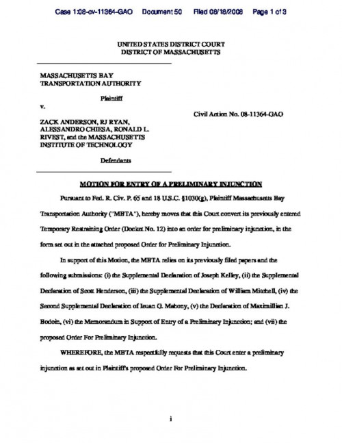Document | August 14, 2008 MBTA Protective Order Exhibit 1 Read more about MBTA Protective Order Exhibit 1