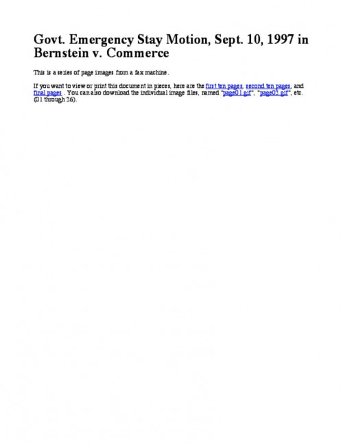 to have even Judge Patel's narrowly stayed injunction completely stayed. They are trying to convince the Appeals court that the national security will be damaged if two pages of Snuffle code are posted to the Web....
