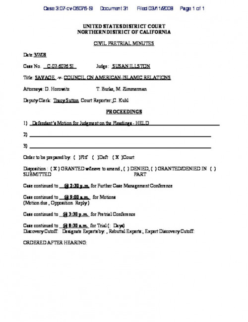 Document | March 11, 2008 Civil Pretrial Minutes of Motion to Dismiss Hearing Read more about Civil Pretrial Minutes of Motion to Dismiss Hearing