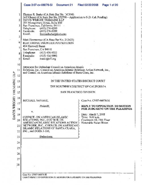 Document | February 22, 2008 Defendant's Reply to Opposition to Motion for Judgment on the Pleadings Read more about Defendant's Reply to Opposition to Motion for Judgment on the Pleadings