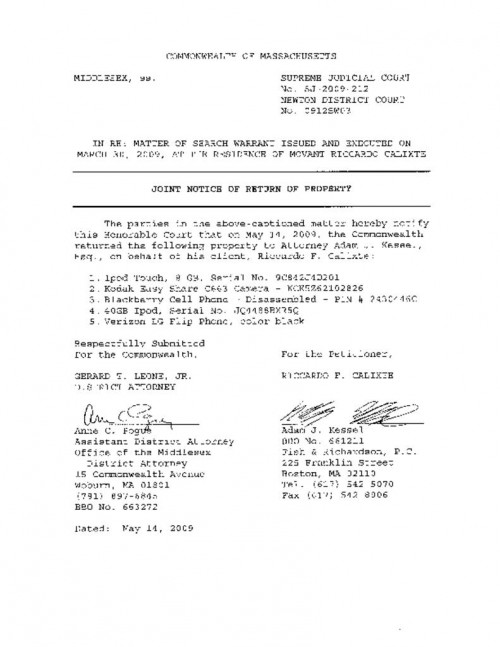 Document | May 14, 2009 Joint Notice of Return of Property Read more about Joint Notice of Return of Property