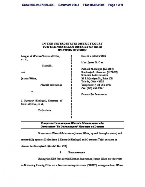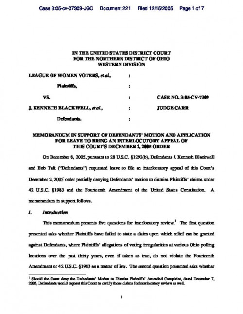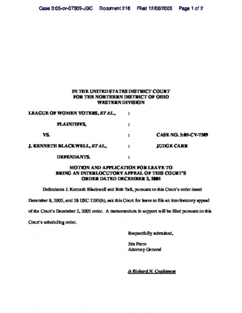 Document | January 5, 2006 LWV's Opposition to Defendants' Interlocutory Appeal Application Read more about LWV's Opposition to Defendants' Interlocutory Appeal Application
