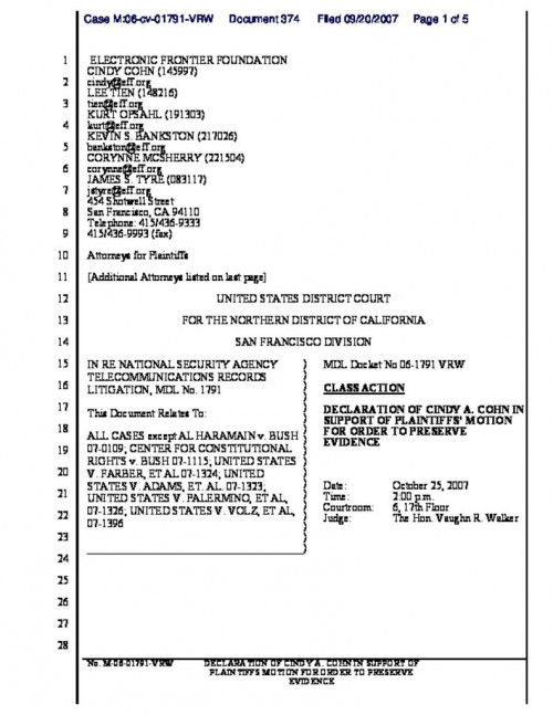 Document | September 28, 2007 AT&T letter re: EFF discovery request Read more about AT&T letter re: EFF discovery request