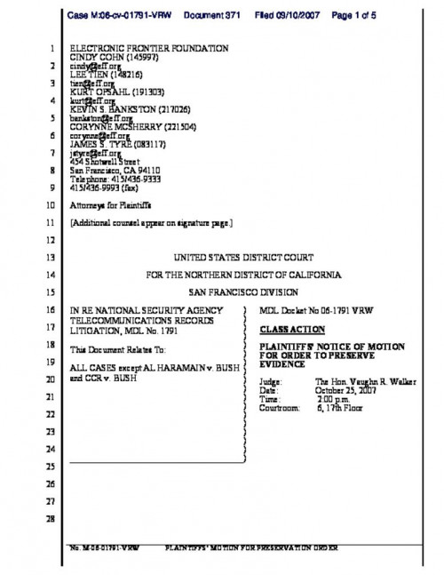 Document | September 10, 2007 Plaintiffs' notice of motion for order to preserve evidence Read more about Plaintiffs' notice of motion for order to preserve evidence