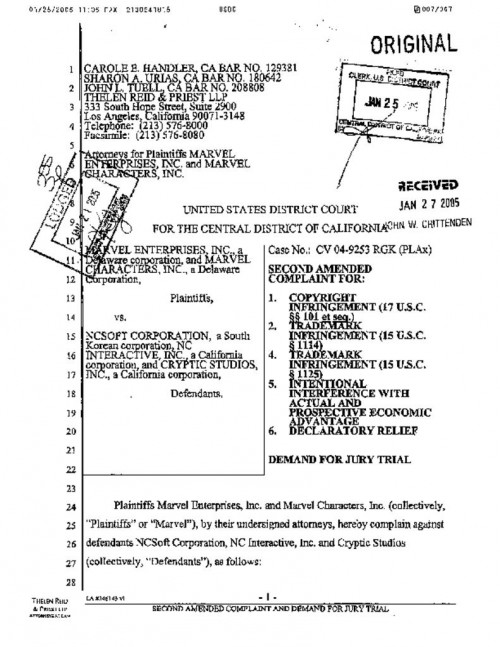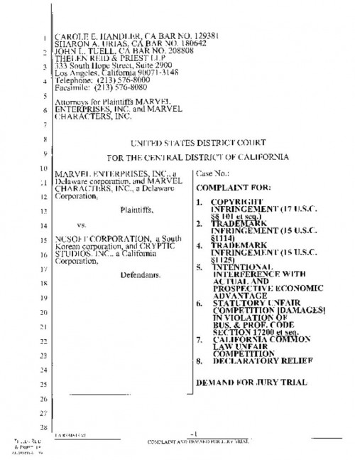 Document | November 11, 2004 Marvel's Complaint against NCSoft Read more about Marvel's Complaint against NCSoft