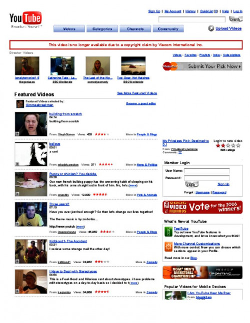 Document | March 22, 2007 Screenshot of the removal notice on YouTube Read more about Screenshot of the removal notice on YouTube