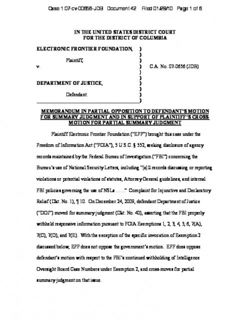 Document | January 28, 2010 EFF's Cross-Motion for Partial Summary Judgment Read more about EFF's Cross-Motion for Partial Summary Judgment