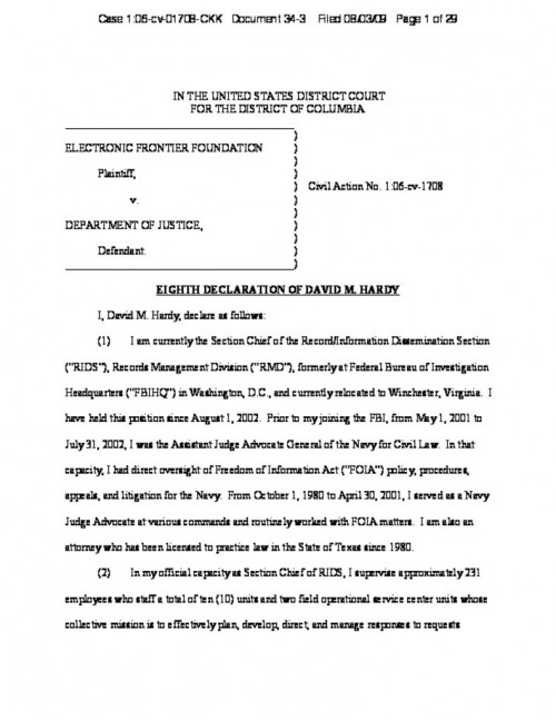 Document | August 3, 2009 Eighth Declaration of David M. Hardy Read more about Eighth Declaration of David M. Hardy