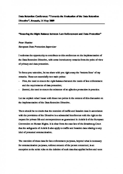 Data Retention Conference: “Towards the Evaluation of the Data Retention Directive”