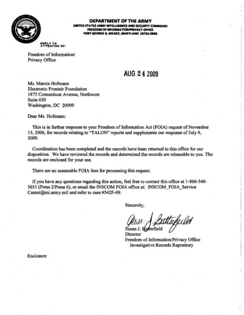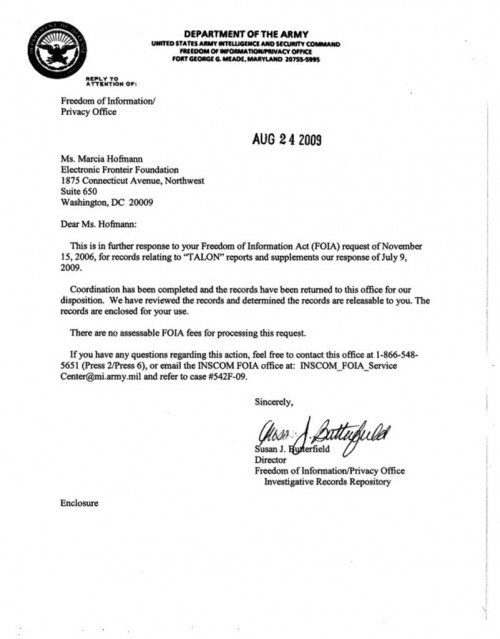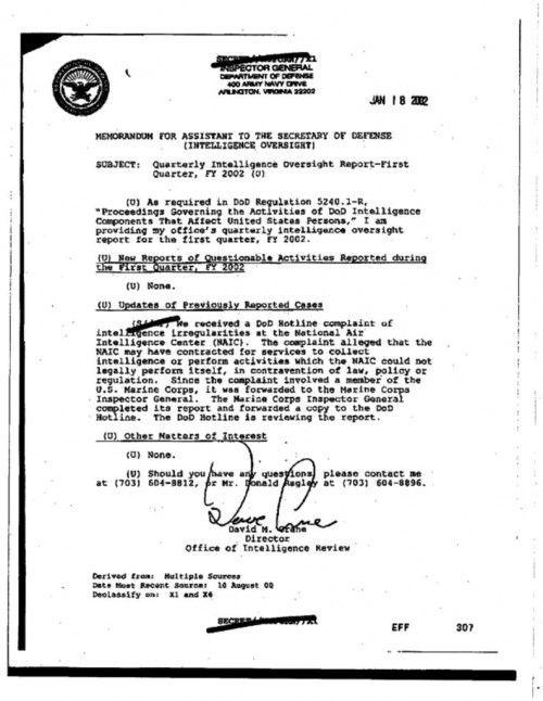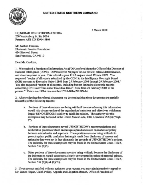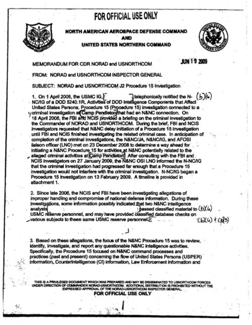 Referred to NORAD from the Office of the Director of National Intelligence.