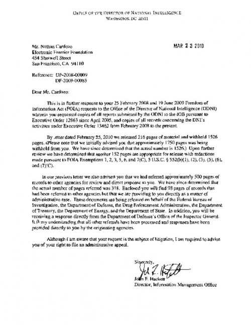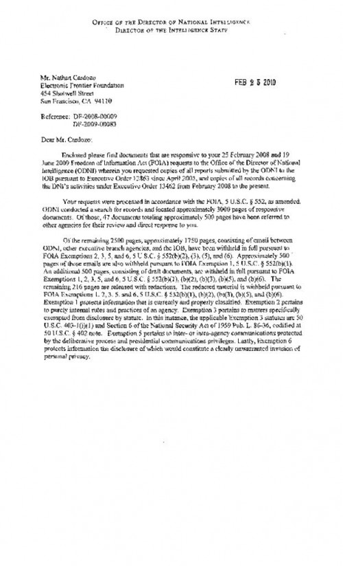Correspondence to and from the ODNI re: IOB reports.
