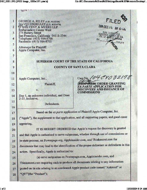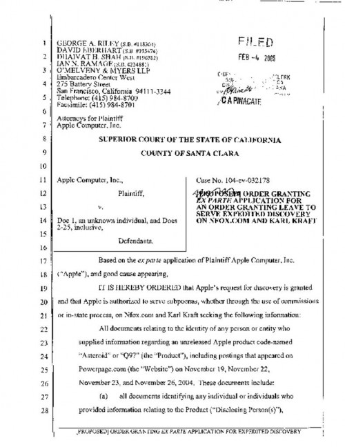 Document | September 13, 2007 Santa Clara County Court Order re Discovery Read more about Santa Clara County Court Order re Discovery