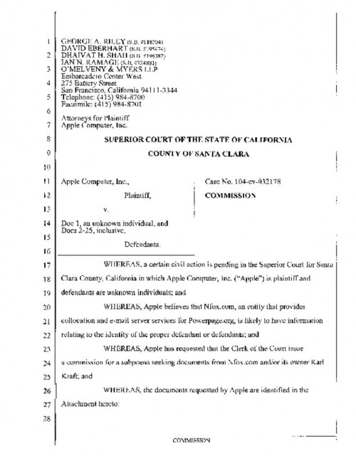Document | September 13, 2007 Commission to Nevada Court re Subpoena to Nfox (PowerPage's Email Provider) Read more about Commission to Nevada Court re Subpoena to Nfox (PowerPage's Email Provider)