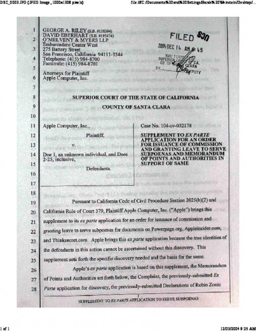 Document | September 13, 2007 Supplement to Ex Parte Application Read more about Supplement to Ex Parte Application