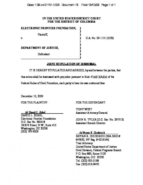 Document | December 10, 2009 Joint Stipulation of Dismissal Read more about Joint Stipulation of Dismissal