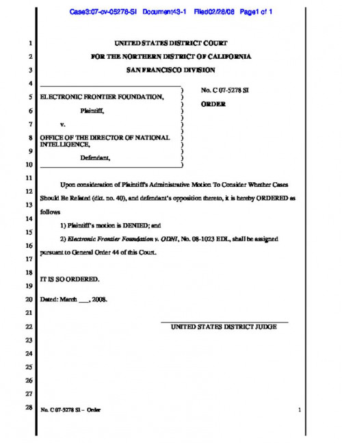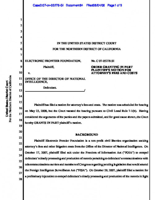 Document | June 4, 2008 Order Granting in Part EFF's Motion for Attorney Fees and Costs Read more about Order Granting in Part EFF's Motion for Attorney Fees and Costs