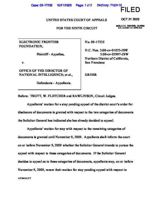 Document | October 13, 2009 Order Denying Emergency Filing for a Stay Read more about Order Denying Emergency Filing for a Stay