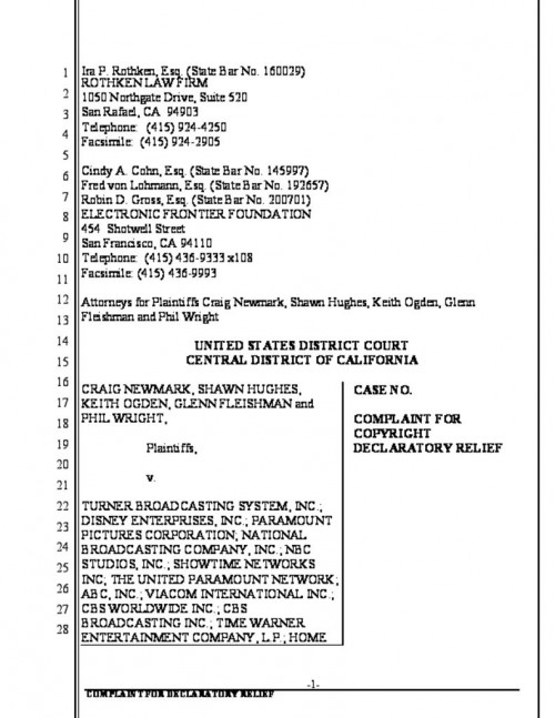 Document | June 6, 2002 EFF/ReplayTV Owners' Complaint for Declaratory Judgment Read more about EFF/ReplayTV Owners' Complaint for Declaratory Judgment