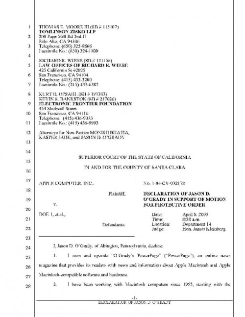 Document | September 13, 2007 Declaration of Jason O'Grady (PowerPage) Read more about Declaration of Jason O'Grady (PowerPage)
