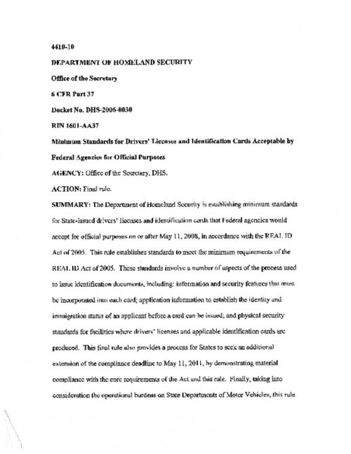 DHS REAL ID Final Rule 1