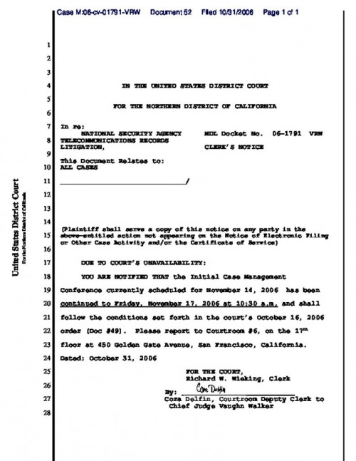 Document | October 16, 2006 Order setting case management conference for November 14 Read more about Order setting case management conference for November 14