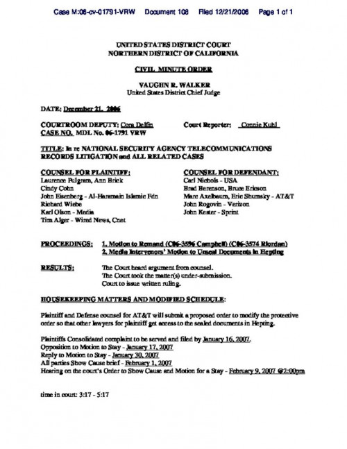 Document | December 21, 2006 Minute order on December 21 hearing Read more about Minute order on December 21 hearing