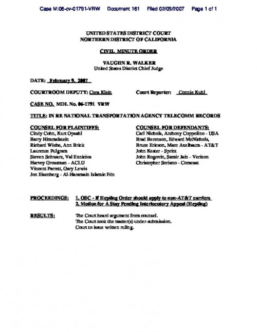 Document | February 12, 2007 Minute order for hearing on February 9 Read more about Minute order for hearing on February 9