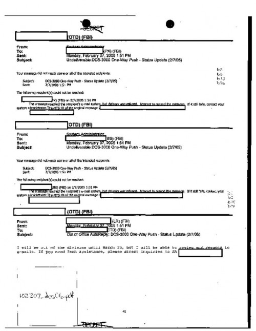 technical status reports; DCS 3000 training slides; agency emails; manuals